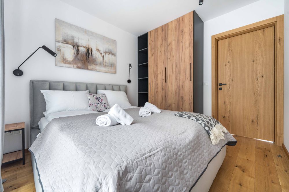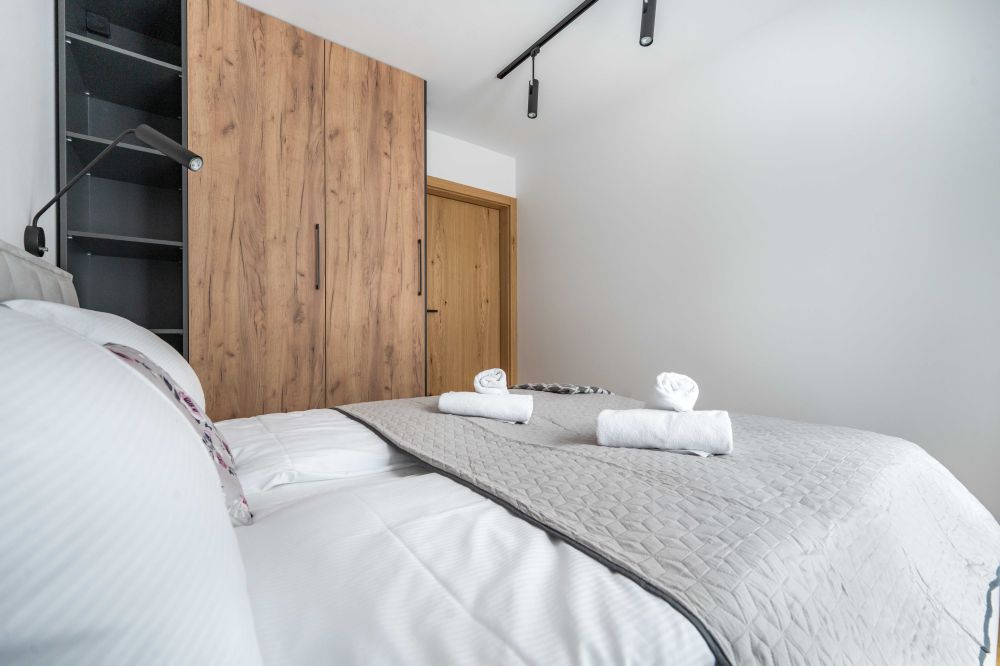 Do apartamentu przypisane są 2 miejsca parkingowe, jedno na zewnątrz oraz jedno w garażu.