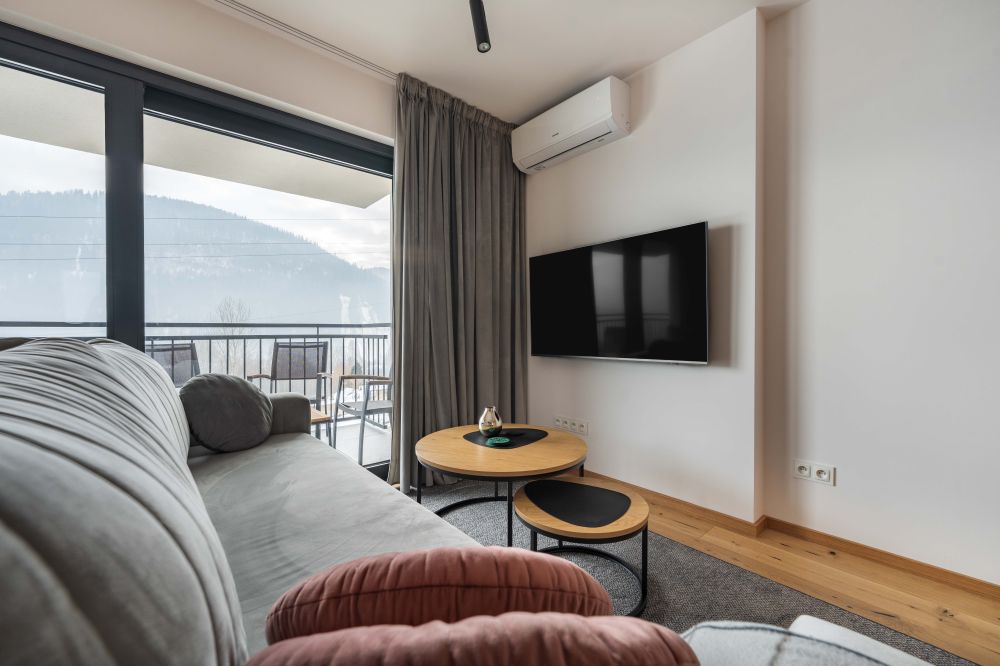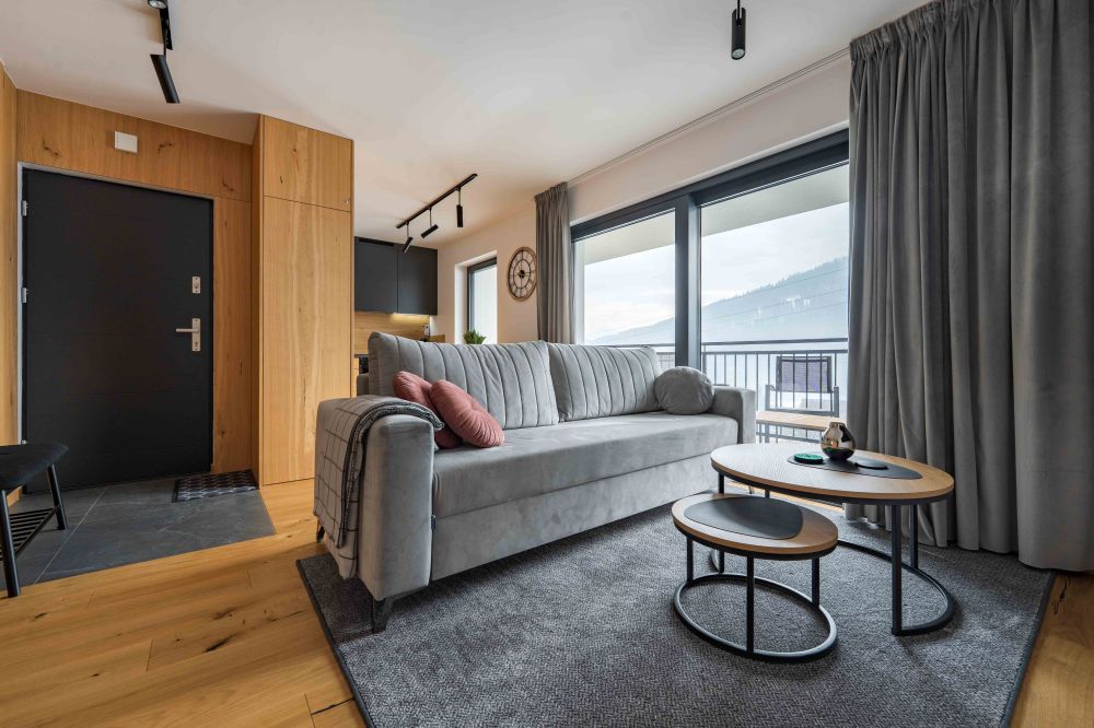 Apartament Górska Przystań II to komfortowy apartament dla 4 osób, o powierzchni 38 m², położony na parterze, w Szczyrku na ulicy Szkolnej 19B/1. Z apartamentu roztacza się piękny widok na okoliczne góry oraz skocznie narciarskie, co sprawia, że poranna kawa i wieczorny odpoczynek nabierają wyjątkowego klimatu