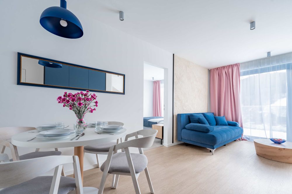 Czym jest luksus? To przestrzeń, w której niczego Ci nie brakuje. Apartamenty LUX o powierzchni od 51 do 56 m² oferują salon i dwie osobne sypialnie, dzięki czemu są idealnym wyborem dla rodzin lub grup przyjaciół. Każdy detal tych wnętrz został zaprojektowany z myślą o wygodzie i estetyce, od w pełni wyposażonego aneksu kuchennego, przez przestronne łazienki, aż po tarasy, na których możesz godzinami wpatrywać się w górski horyzont.