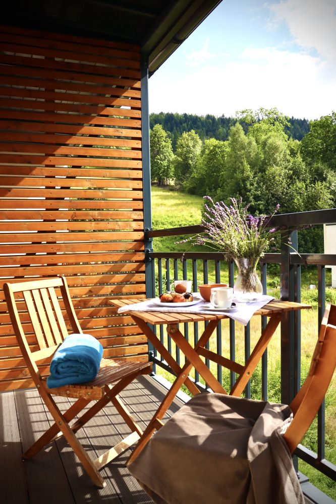Pokoje z dużym łóżkiem małżeńskim (możliwość rozłączenia), TV z dużym ekranem, stół i krzesła, wyjście na balkon z widokiem na góry lub ogród.