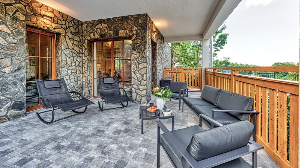 Wyjątkowym atutem apartamentu jest przestronny taras wyposażony w wygodne fotele i krzesła ogrodowe. To idealne miejsce na poranną kawę, rodzinne śniadanie na świeżym powietrzu czy wieczorny relaks z kieliszkiem wina. Taras pozwala w pełni cieszyć się górskim powietrzem i spokojem Szklarskiej Poręby.