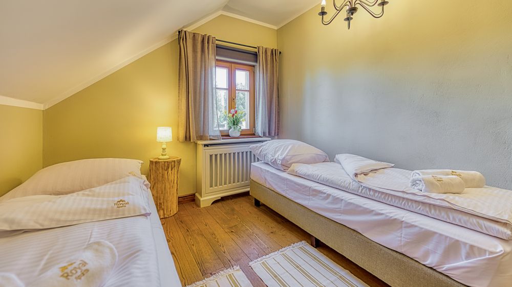 - druga z dwoma łóżkami pojedynczymi, które również można zestawić w jedno.