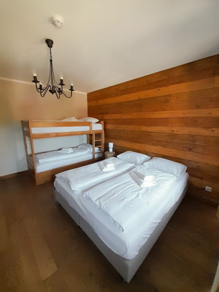 - pierwsza z dwoma łóżkami pojedynczymi (z możliwością połączenia) oraz łóżkiem piętrowym,