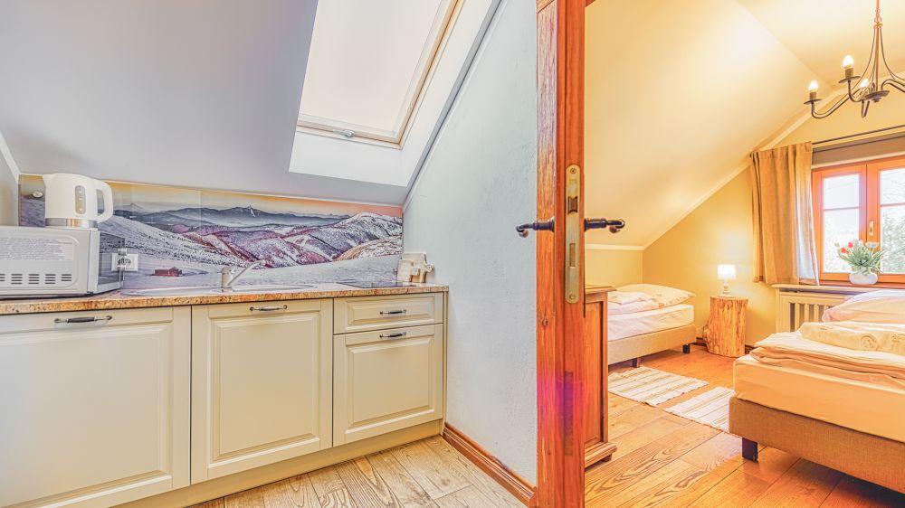 Apartament Precel to przytulna przestrzeń w rustykalnym stylu, idealna na rodzinny wypoczynek w sercu Szklarskiej Poręby. Położony na pierwszym piętrze, zapewnia komfort, funkcjonalność i ciepłą, domową atmosferę.