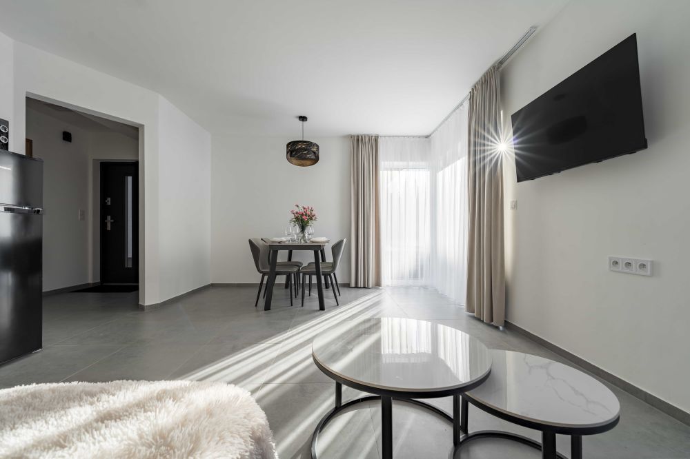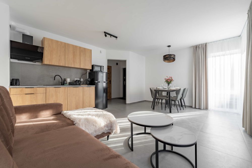 Apartament oferuje przestronne wnętrza, praktyczne rozmieszczenie pomieszczeń oraz pełne wyposażenie dla wygody gości. To idealne miejsce dla par, rodzin oraz grup znajomych.